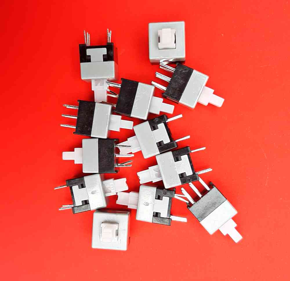 6 Pin 2.54mm Pitch Mini Push Button Square Switch Self-Locking DPDT PCB Mount. Push Switch -Self Locking Action - 6 Pin Switch.
